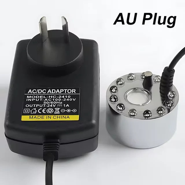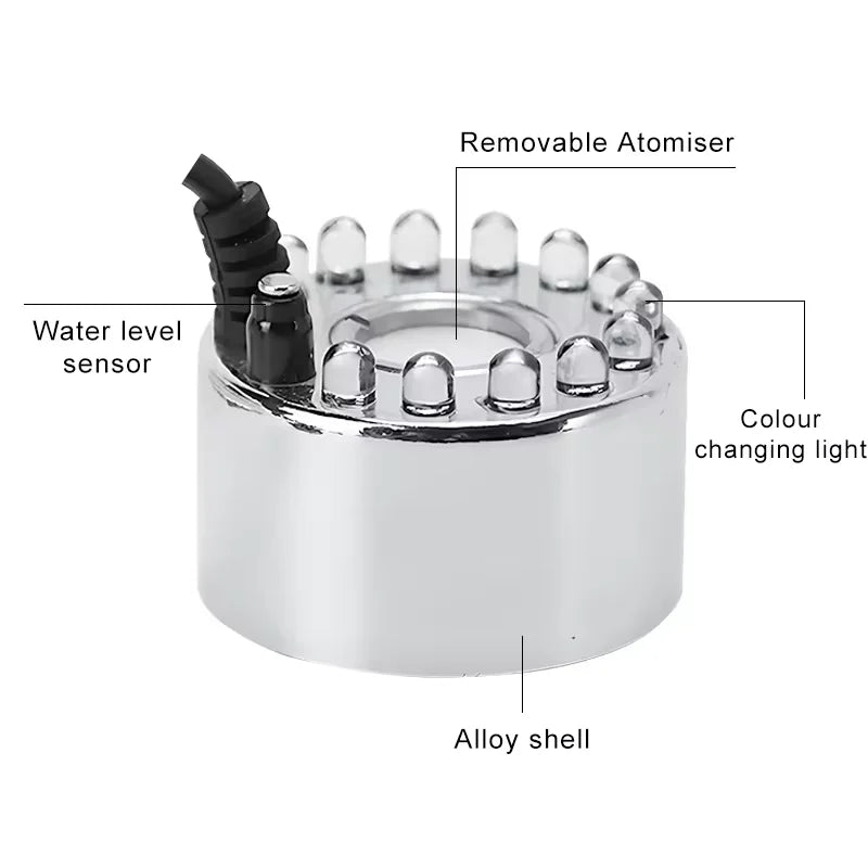 Just put ultrasonic mister in water then switch on power, mist come out. Best water level is 2-3cm higher than sensor on upper edge. Long length power adapter cable satisfy indoor or outdoor fountains, water feature, and office use.